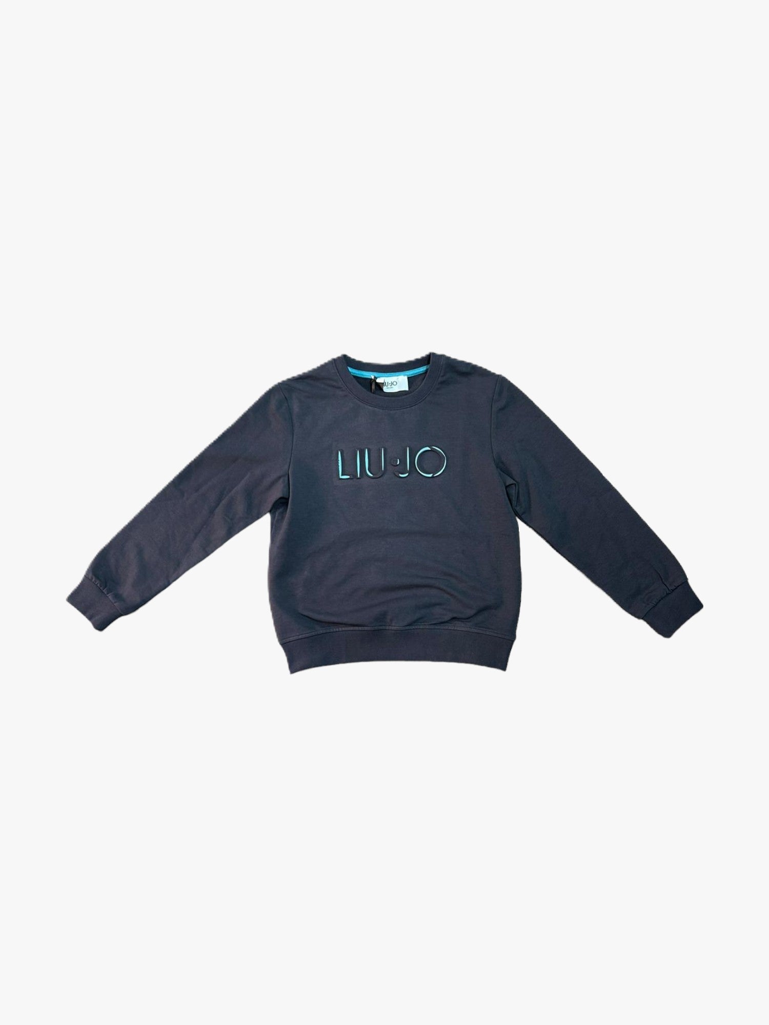LIU JO sweatshirt with logo on the front in light blue, for children. Crew neck. Long sleeves.